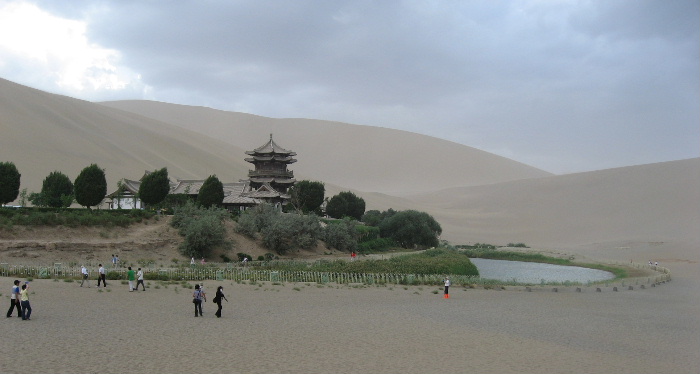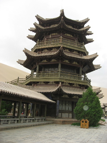 鳴沙山・月牙泉に着いた。この建物も近年造られた。西域の開発区域