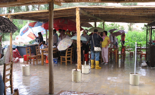 雨が降ってきた。売店は日除けはあるが、雨は想定して無いから日傘