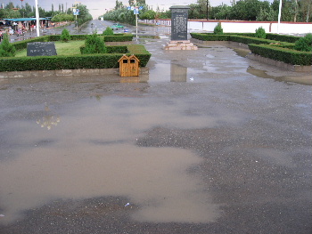 は雨水が溜まってぬかるみ。散水の手間が省けたかな? .