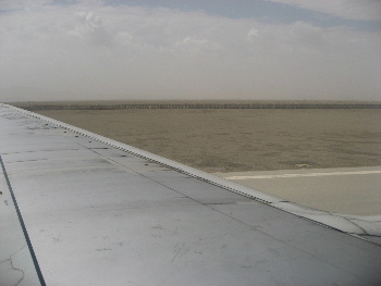 飛行機の窓からの景色は、砂・砂・砂だったから、ほっとする。 .