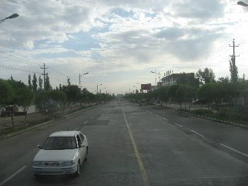 敦煌の市街は、田舎の面影を残して素朴さを感じる。車道や歩道は