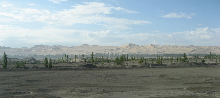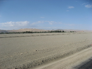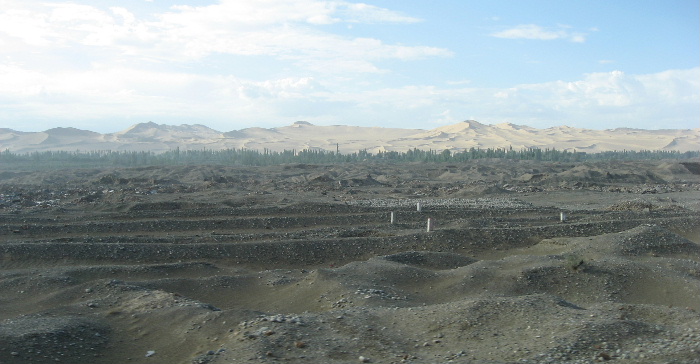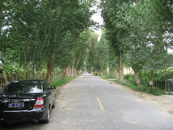 玉門関を後にして、オアシスにある農家の敦煌家庭料理の昼食に向かう途中