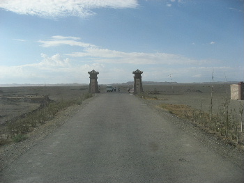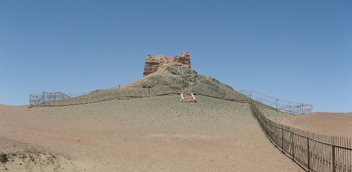 遺跡にたどり着いた。正面の出入り口が「西域への出発口」であった。フェンスが