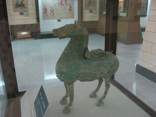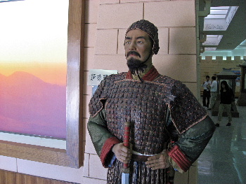 入口を入ると、中庭に張騫の石像がある、漢時代に西方の事を語るとき