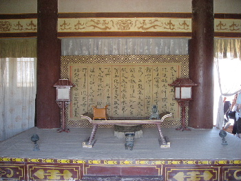 石碑堂にやって来た、細長く建てられたこの堂から、ゴビ砂漠が一望できる