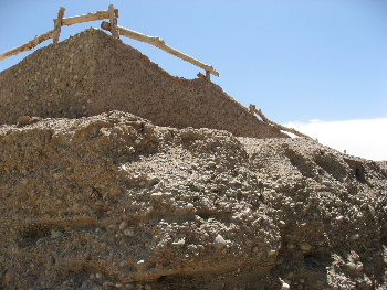 壁面の一部を撮影、砂に石が練りこまれてある、黄砂の元か?