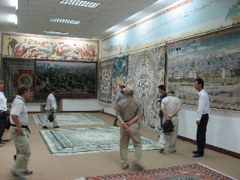 絨毯工場の見学。折り目の粗さはなんとも言いがたいが、柄は中国風?