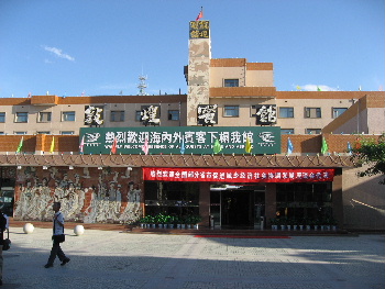夕食は「敦煌賓館」で日本食、道路にまでこのレストランの鳥居が
