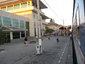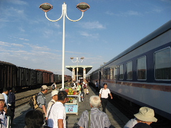 トルファン駅に到着した。火炎地獄の様な所のオアシスは貴重なスポットだ