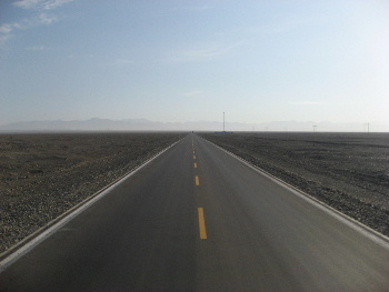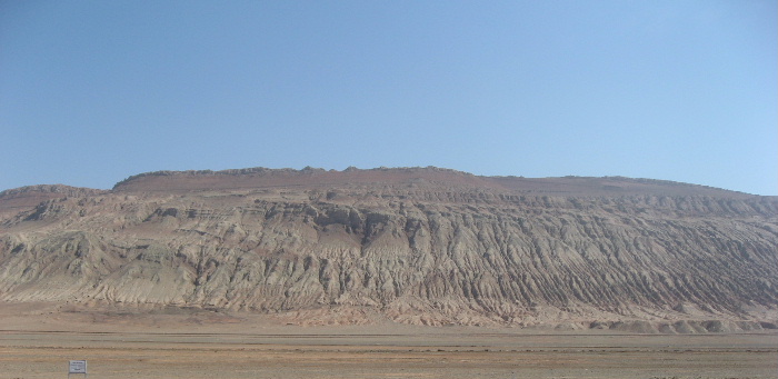 トルファン盆地は、海抜マイナス154mで世界第二位の低地にあり、真昼の
