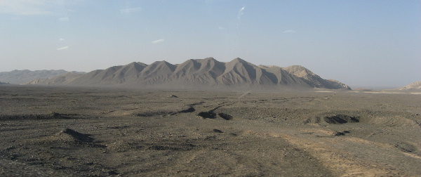 まだまだ、砂の大地は続く、火焔山の山並みも「画」になるから楽しい