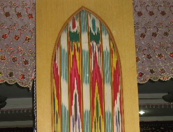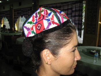 ウエイトレスのお嬢さんが被っていた帽子と壁に掛かっていたタペストリー