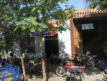木蔭では男性達が、お店の前のベンチには女性と子供が・・・イスラム?