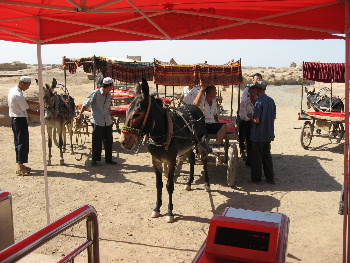 出るとロバ車が待っている。カンカン照りで肌が痛い。ロバ可愛そう