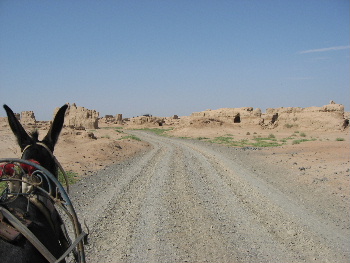 大仏寺やモスクが一部残っている所に着いた。ロバ車を降りて徒歩で・・・
