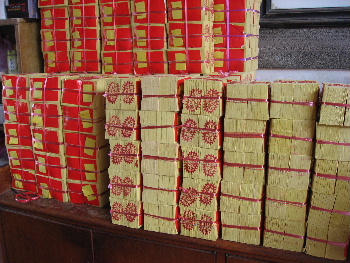 お参りする時は、この束ねた半紙を持って、神様に願い事をし、その後