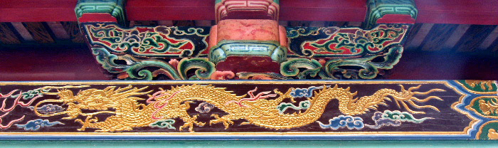 鴨居に書かれた素晴らしい龍の絵と彫刻。今回旅行で最良のものだ