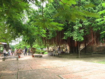 いきなり広場があった。お寺の前には机が置かれ、子供たちが勉強している