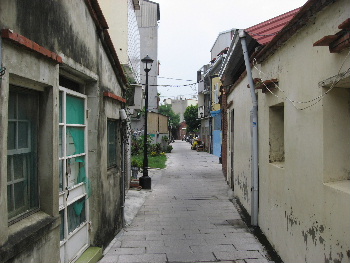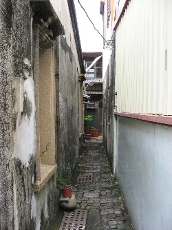 家と家の間を這うように道?通路があり、蛇行していて、入ると方向を見誤る