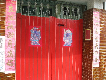 この家は真っ赤に門を塗り、換羽と劉備の画を貼り付けている。 .