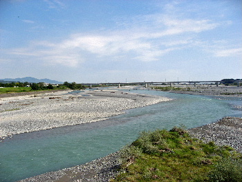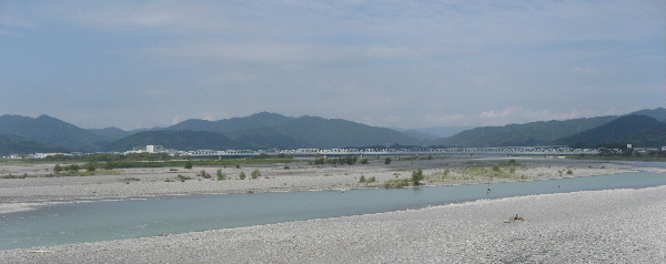 新幹線から見た大井川。 ひろ〜い!川幅が1km位ある?今は水が少ない