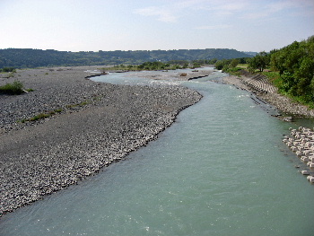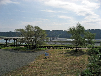 橋の上から、上流と下流を眺めると、水量は少ないが雄大な景色が目に入る