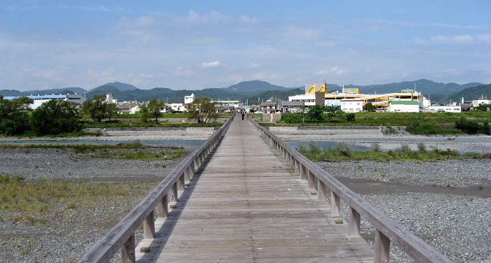 大井川に架かる、世界一長い木造歩道橋で、現在は観光用に開放されている