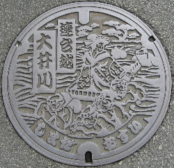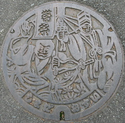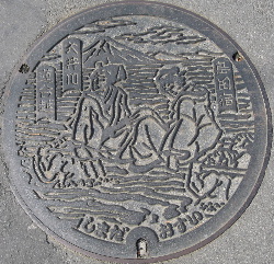 蓬莱橋を後に市役所前に戻る事にした。道路のマンホールの蓋には
