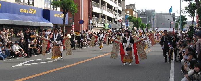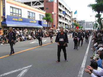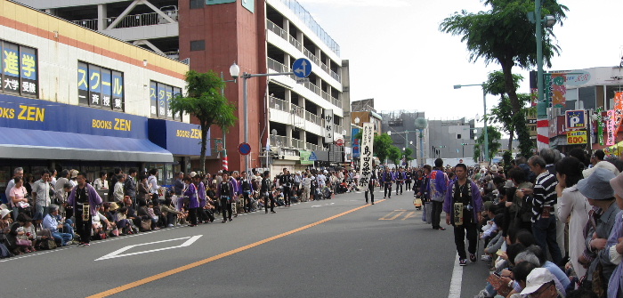 に組織され、そして沿道で拍手をする人・人、街ぐるみで全員参加の