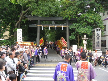 御する、お里帰りのお祭りである。写真は土曜日の行列で神社へ参拝に