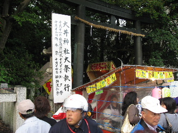 水の神、土の神、太陽の神の三女神を祀る大井神社。お祭りの雰囲気が