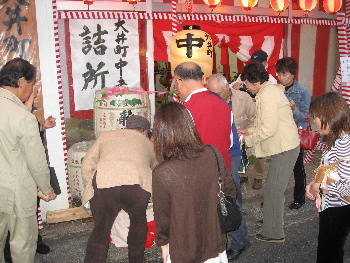 境内には、お店がギィッシリ立ち並び、沿道の商家の店先には振舞い酒