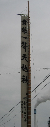 で。遺跡への道路からの入り口に大きな幟?「黄鶴一聲天地秋」の文字