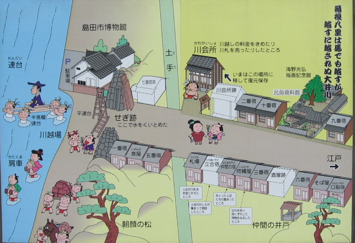 ています。島田宿は川止めにより、賑わい発展しました。 .