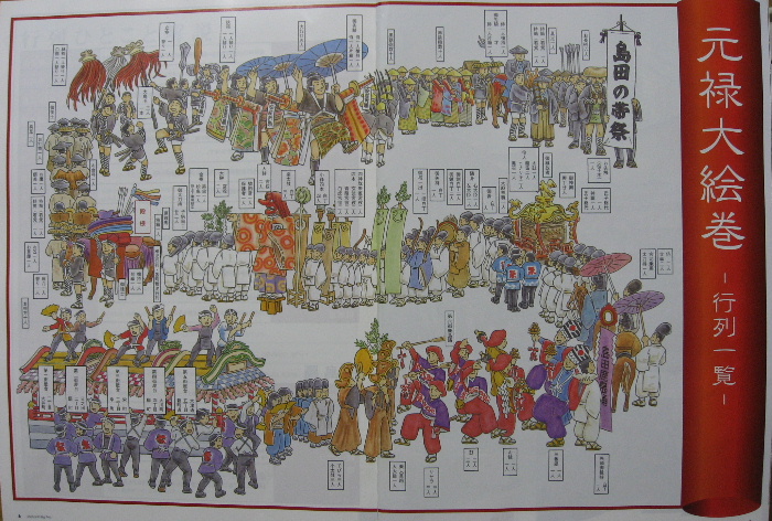 行列一覧「元禄大絵巻」のイラストで見ると、最初は大名行列で、その中ほどに