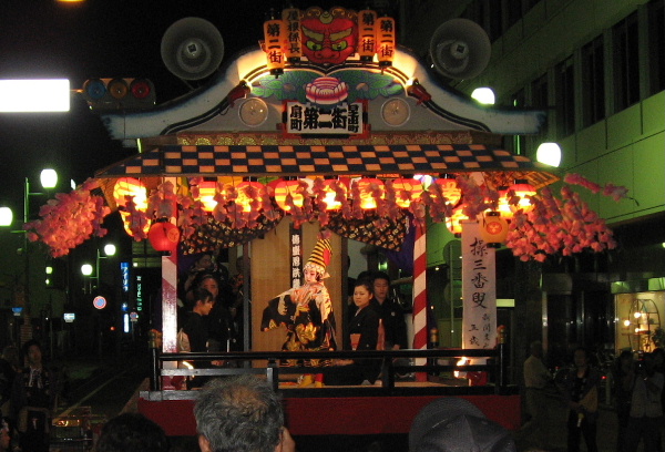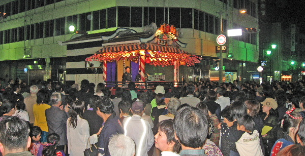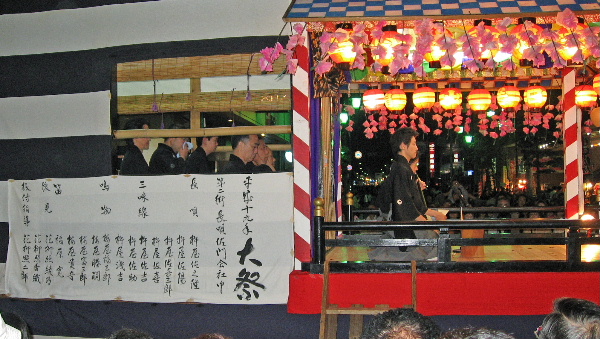 夕食後、お祭りの夜の部のハイライト!屋台の長唄と奉納踊り(上踊り)