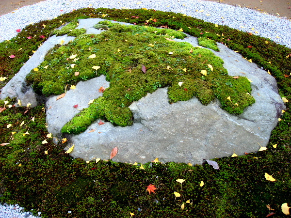 庭石に群生した苔に、紅葉が彩りを深め、楽しくもある趣に足を止めて