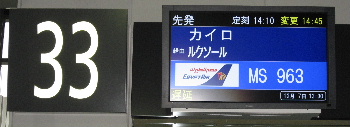 今回は直行便のエジプト航空での旅です。関空の一番端の33番ゲート