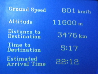 偏西風に乗って飛びますので、11時間足らずですみます。そして、軽食は