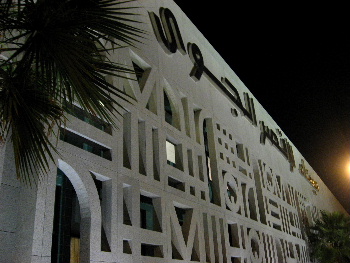 タラップを降りて、バスに乗って空港建物に到着。アラビヤ文字のお出迎え