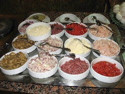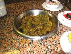 中央の豆コロッケ(ターメイヤ?)が代表的な物。これはおいしいが、香辛料を