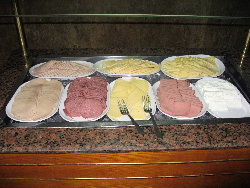 られてバットに入っている、チーズのコーナーにはサラミソーセージ風の物が