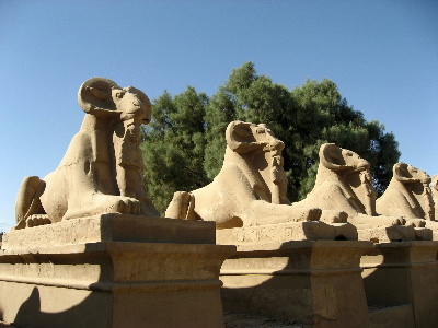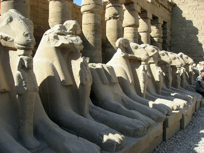 カルナック神殿の参道の両脇には、「羊頭のスフィンクス」が並んでいます