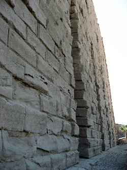 この城門と城壁が回りを囲っています。この神殿は歴代のファラオが部分