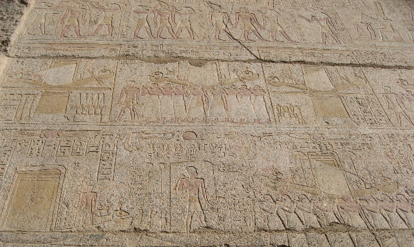 偉大な王、ラムセス2世が神様に捧げものをしているものが、数多く