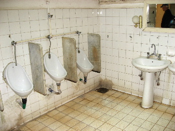 ここのトイレは、0.5ELで有料。青い服のおじさんが現地語で何か言ってます