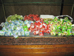 イスラムの国だから、お肉が無い。写真には無いが、ウインナーや卵は温め