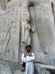 入り口まで戻った時、ラムセス2世像の左から、このだんなが顔を出して