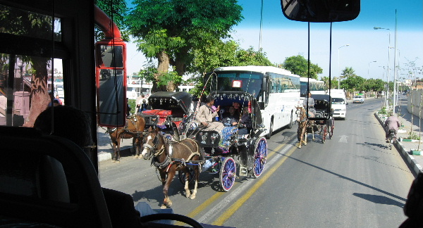 道路には観光馬車タクシー?が派手な飾りをつけて走っています。 .