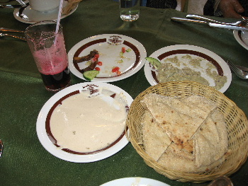 最初に出てきたのは、ナンの様な薄焼きパンに、すりゴマのバター?酸味が
